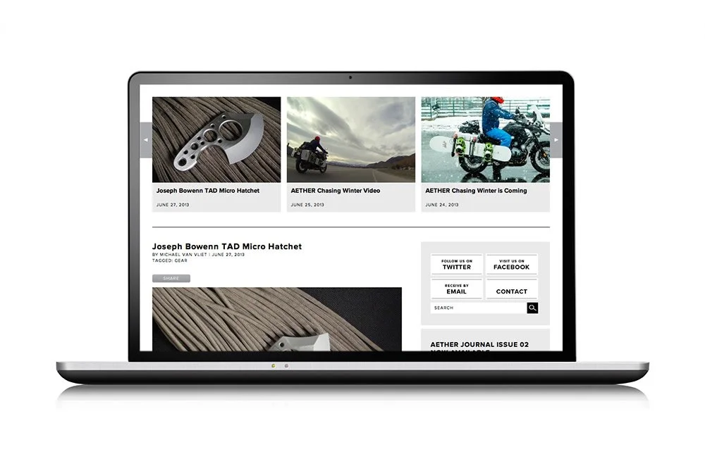 Krate kept the Aether customer in mind as we re-tooled and built the entire site, from product availability reminders, currency converters and language switching, new product sections and visuals, a new blog, and more. And on the backend, an entire new CMS was put in place with new content tools and reporting options for the Aether staff to manage all of the details on the site. We teamed up with designer Nina Masuda and Aether’s in-house team for the design, while our good friends at Carbone Smolan Agency did the branding.